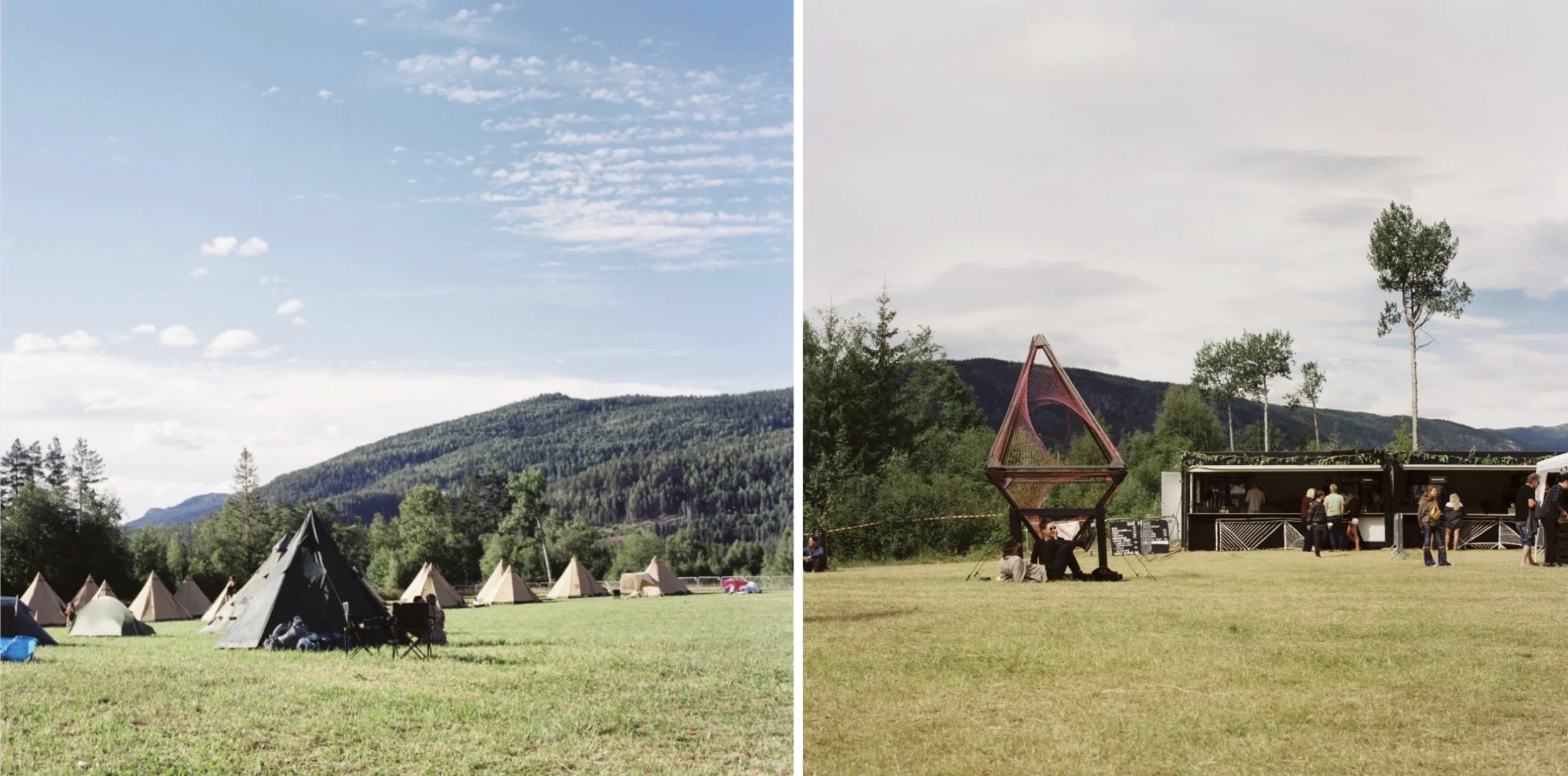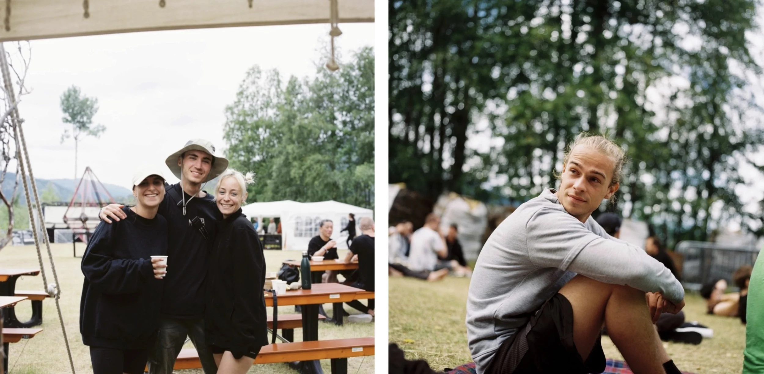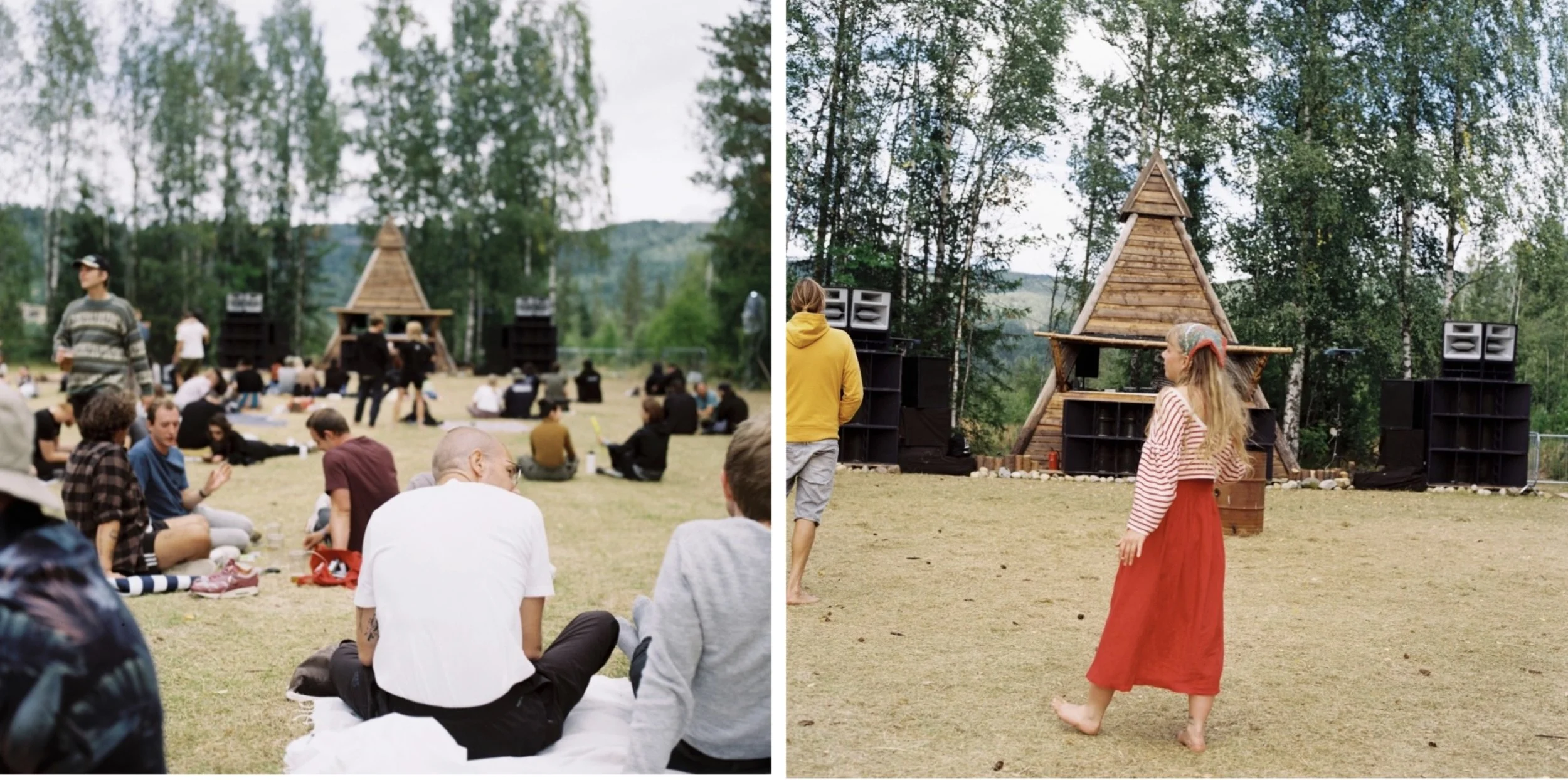 Vi var omringet av norsk natur, akkompagnert av behagelige lyder fra høyttalerne som om vi befant oss i en boble under vann. Det var ikke et ukjent fenomen å ta av seg skoene og danse barfot i gresset, noe jeg selvfølgelig også prøvde. Hippie-vibber deluxe – jeg vet. Det var ikke en eneste Coca Cola å finne til dagen derpå. Det du dog kunne få var en kald matcha kombucha te, som fungerte som en god nummer to. Jeg kunne sette pris på dedikasjonen til det naturlige. Det var virkelig som å være i en annen verden enn asfalterte Oslo, akkurat som vi ville. En verden der det meste du kan tenke deg hadde en twist av hippie.