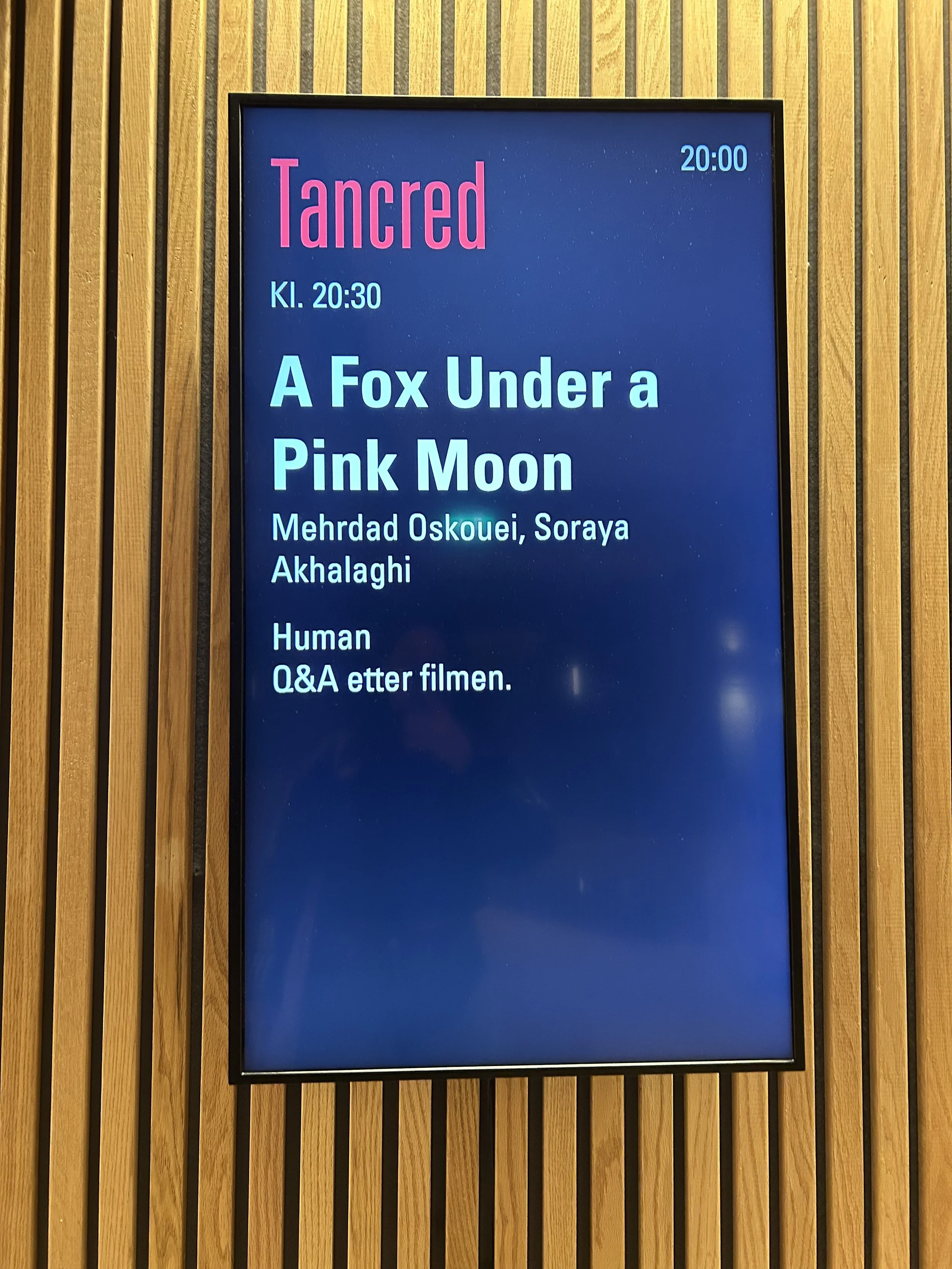 Oslo hosted the Human International Documentary Film Festival in the early days of March this year. It is Oslo’s largest documentary film festival focussing on topics about human rights, social issues and global topics. It featured norwegian and international documentaries with opportunities to talk to some directors after the premiere. The Festival is used as a discussion platform where filmmakers, activist and audiences interact. A Fox Under a Pink Moon was part of the Human Festival 2026, serving as the opening movie.